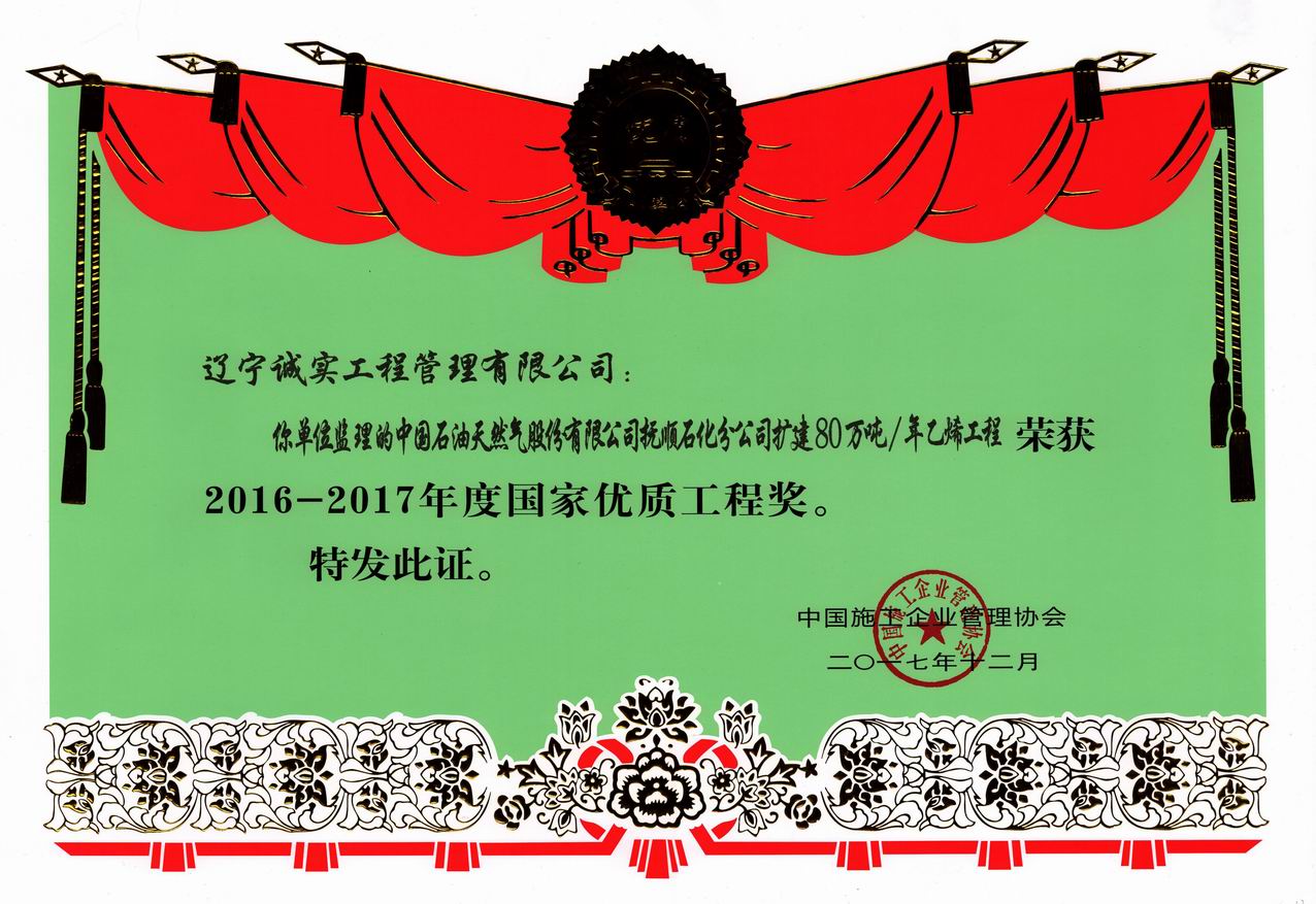 2016-2017年國(guó)家優(yōu)質(zhì)工程獎(jiǎng)(撫順...