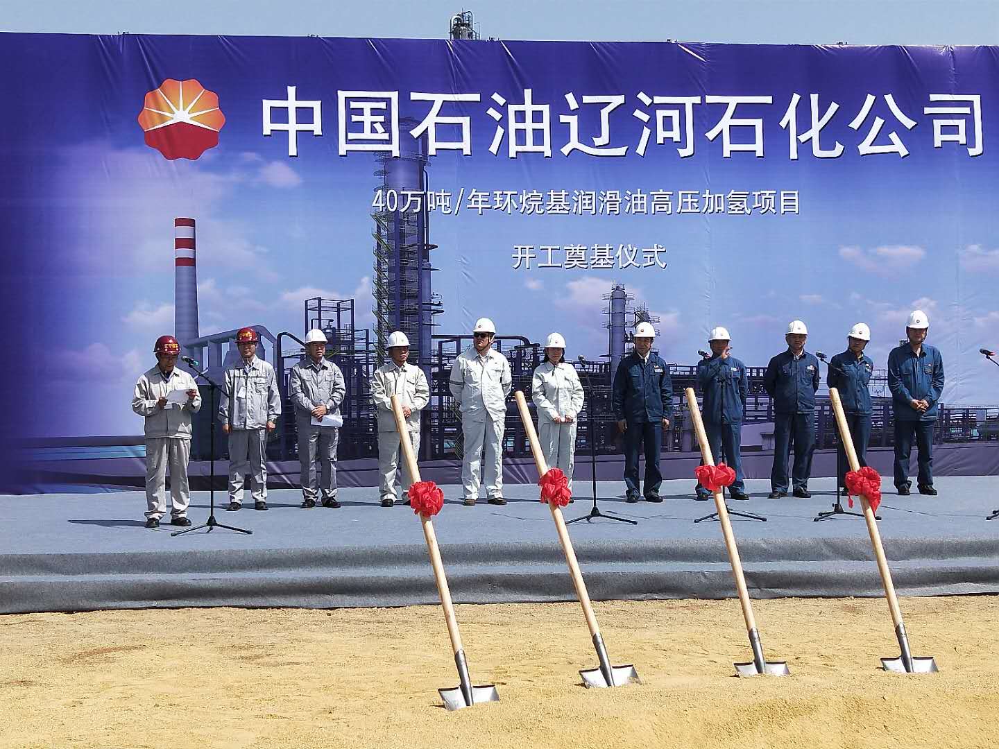 2018年5月8日上午9時(shí)58分,風(fēng)和日麗,晴空萬(wàn)里。中國(guó)石油遼河石化公司40萬(wàn)噸/年環(huán)烷基潤(rùn)滑油高壓加氫項(xiàng)目開(kāi)工奠基儀式在遼河石化廠區(qū)項(xiàng)目現(xiàn)場(chǎng)隆重舉行。我公司總經(jīng)理田立奎、項(xiàng)目總監(jiān)理工程師黃思敏以及項(xiàng)目監(jiān)理部全體監(jiān)理人員參加了會(huì)議。