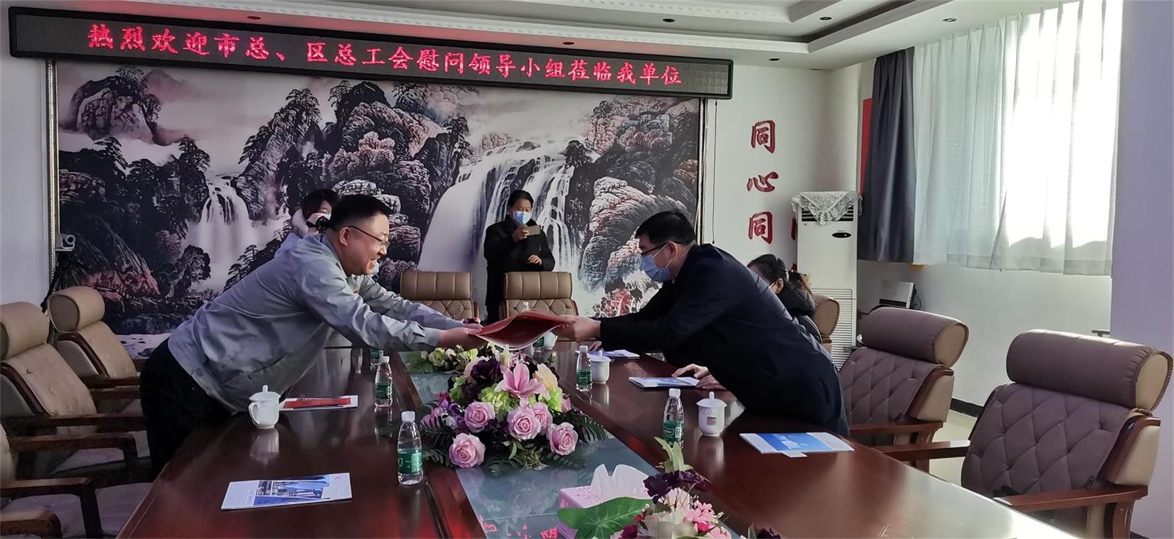 張主席聽完匯報后,首先肯定了我企業(yè)工會的日常工作,以及疫情爆發(fā)之初,我企業(yè)向社會作出的突出貢獻(xiàn),并向我企業(yè)工會撥入送溫暖資金5萬元。最后,張主席還意味深長地說:感謝我企業(yè)在本行業(yè)的堅守,在本市的堅守。馬書記還在春節(jié)即將來臨之際,為企業(yè)贈送了春節(jié)對聯(lián)。