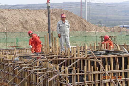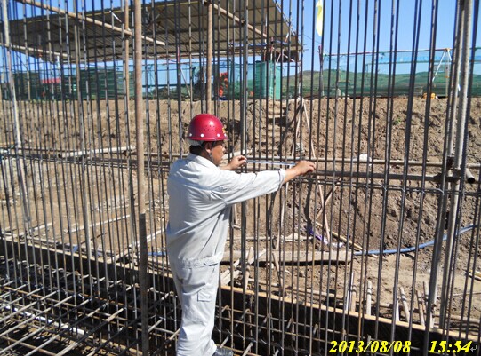 土建監(jiān)理現(xiàn)場(chǎng)檢查壓縮機(jī)廠房基礎(chǔ)環(huán)墻鋼筋綁扎質(zhì)量