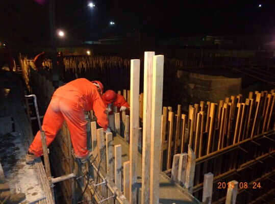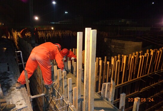 壓縮機(jī)廠房基礎(chǔ)環(huán)墻混凝土夜間澆筑施工現(xiàn)場(chǎng)