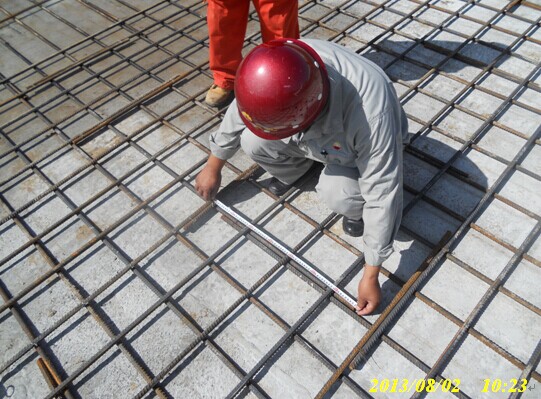 土建監(jiān)理現(xiàn)場(chǎng)檢查壓縮機(jī)廠房筏板基礎(chǔ)鋼筋尺寸