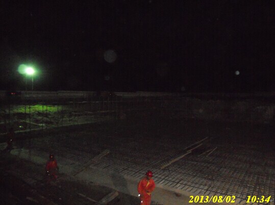 壓縮機(jī)廠房基槽夜間施工現(xiàn)場(chǎng)全景