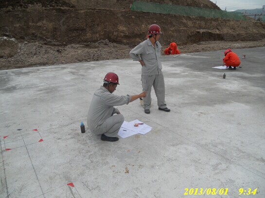 土建監(jiān)理和項(xiàng)目總監(jiān)現(xiàn)場(chǎng)復(fù)核壓縮機(jī)廠房基槽放線尺寸